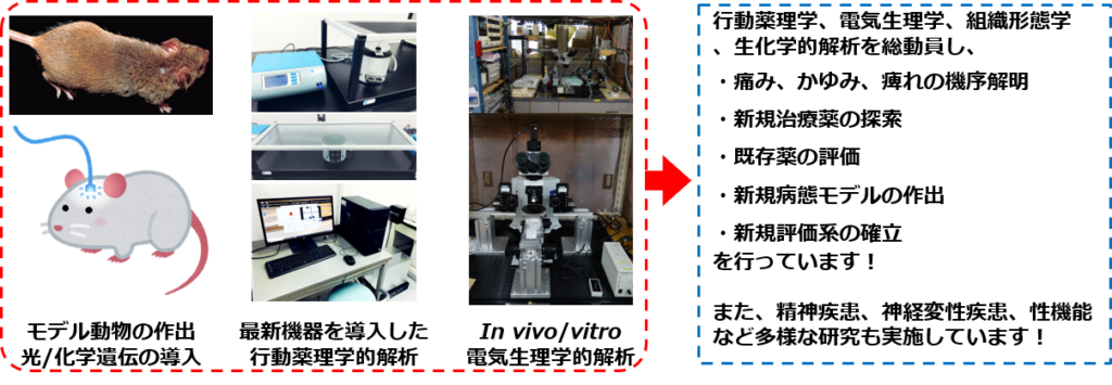 実は、最初から「痛み・かゆみ」を研究していたわけではありません。学部時代は原虫の細胞周期を研究していました。大学院では「人の役に立つ研究をしたい」「脳や神経の分野に関わりたい」と思っていて、縁があって紹介されたのが“痛みの研究室”でした。