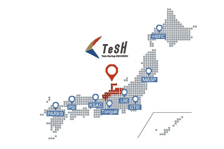 Tech Startup HOKURIKU(TeSH:テッシュ)は、北陸先端科学技術大学院大学と金沢大学を主幹機関とし、北陸3県の11大学、3高専を共同機関とする北陸地域の大学・高専発スタートアップ創出プラットフォームです。